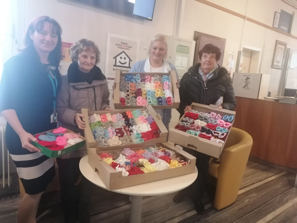 V porodnišnici sta nas prijazno sprejeli glavna sestra porodnišnice in tajnica, direktorica pa je bila službeno zadržana Nad izdelki sta bili več kot navdušeni. Povedali sta, da vsak novorojenček ob odhodu domov dobi copatke ter, da so mamice zelo vesele. Mi pa smo ponosni, da bomo del veselja prispevali z našo donacijo.