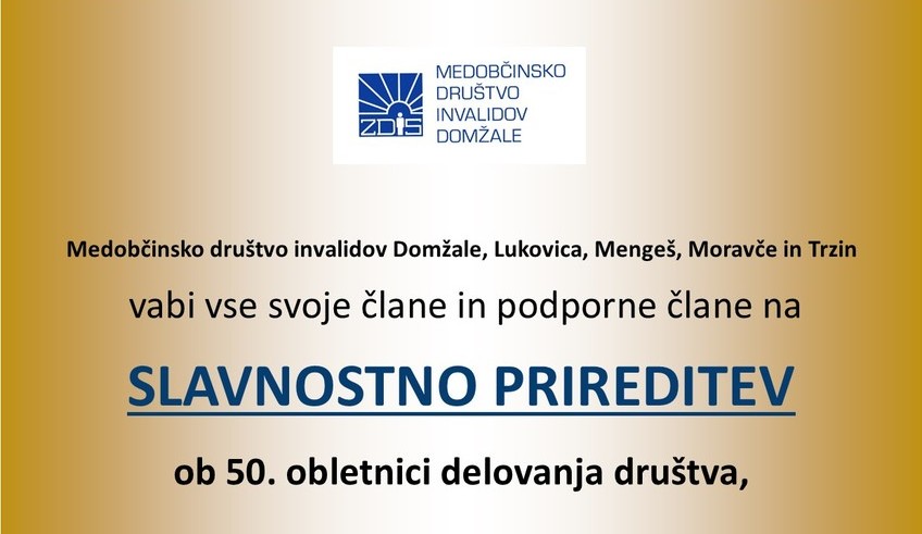 Prireditev ob 50. obletnici delovanja društva bo potekala v soboto, 20. septembra 2025, ob 10. uri v Športni dvorani Domžale.